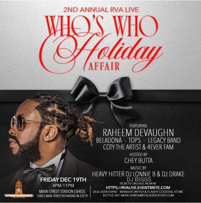 Featuring performances by Grammy-nominated Raheem DeVaughn, BelaDona, Top5, Legacy Band, Coty The Artist & Forever Fan Band